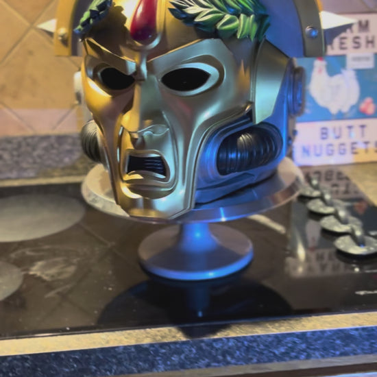 Hand-forged replica of Commander Dante’s Death Mask. High-detail FDM print, finished with layered metallics and weathering. Includes display stand and authenticity code from the Outer Rim Blacksite.